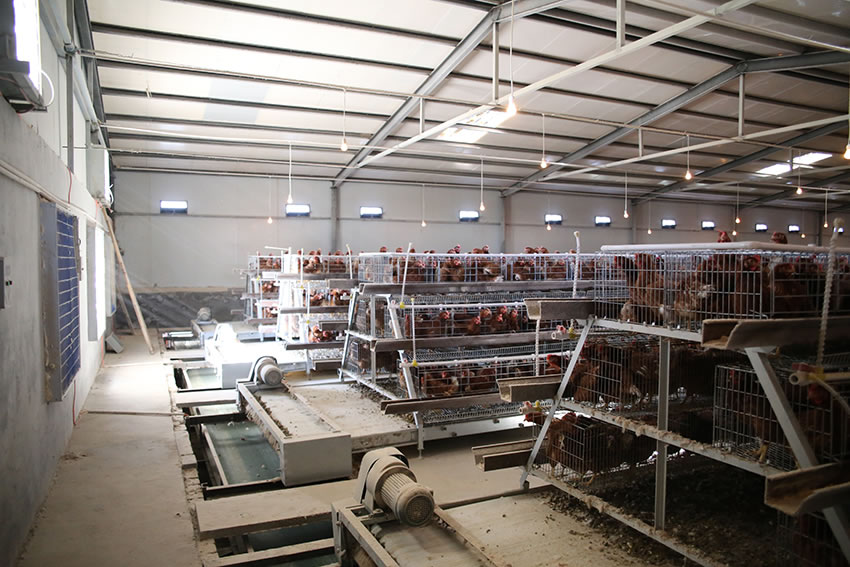 (2)雞糞內(nèi)含水量大,糞水經(jīng)具有一定傾斜度的籠下地面滲出至集糞溝而排出舍外,使雞糞較干燥,便于清理、運輸及加工增值。