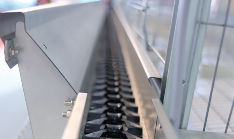 出料口安裝有勻料器、趕雞棒、首尾段殘料回收裝置,減少飼料浪費(fèi)且喂料均勻,喂料量可根據(jù)日齡、雞品種進(jìn)行調(diào)節(jié),保證雞營養(yǎng)充足、均衡。